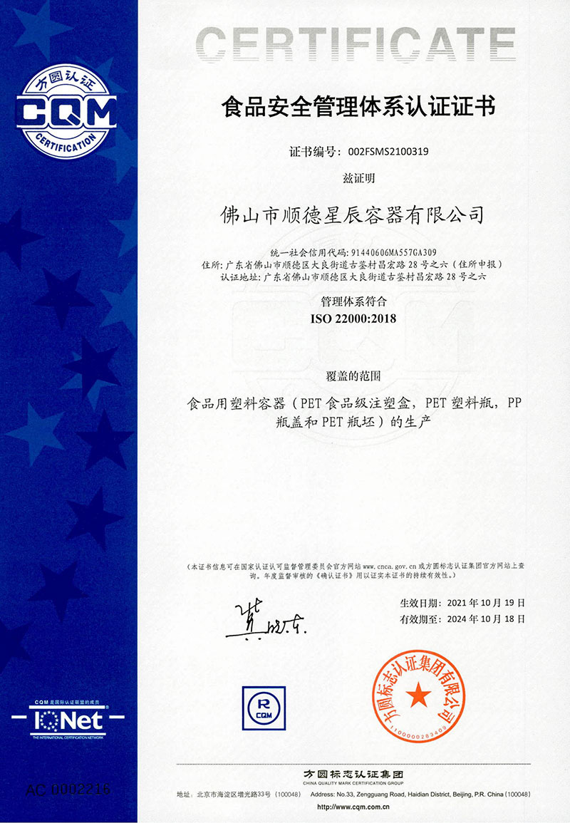 主要產(chǎn)品均以食品級(jí)全新PET為原材料,生產(chǎn)加工為PET注塑食品盒或PET瓶坯,塑料瓶是通過(guò)國(guó)家規(guī)定達(dá)到食品級(jí)要求空壓氣源吹制而成。成品通過(guò)高端機(jī)器設(shè)備 360°全方位無(wú)死角無(wú)盲區(qū)檢測(cè),并將有瑕疵的產(chǎn)品在線自動(dòng)剔除。此項(xiàng)技術(shù)改革避免了由傳統(tǒng)的依靠人手、目視及無(wú)統(tǒng)一的檢驗(yàn)標(biāo)準(zhǔn)、方法而造成良莠不齊的產(chǎn) 品等情況出現(xiàn)。